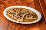 Cubes of chicken, mushrooms, mozzarella cheese & marsala sauce.